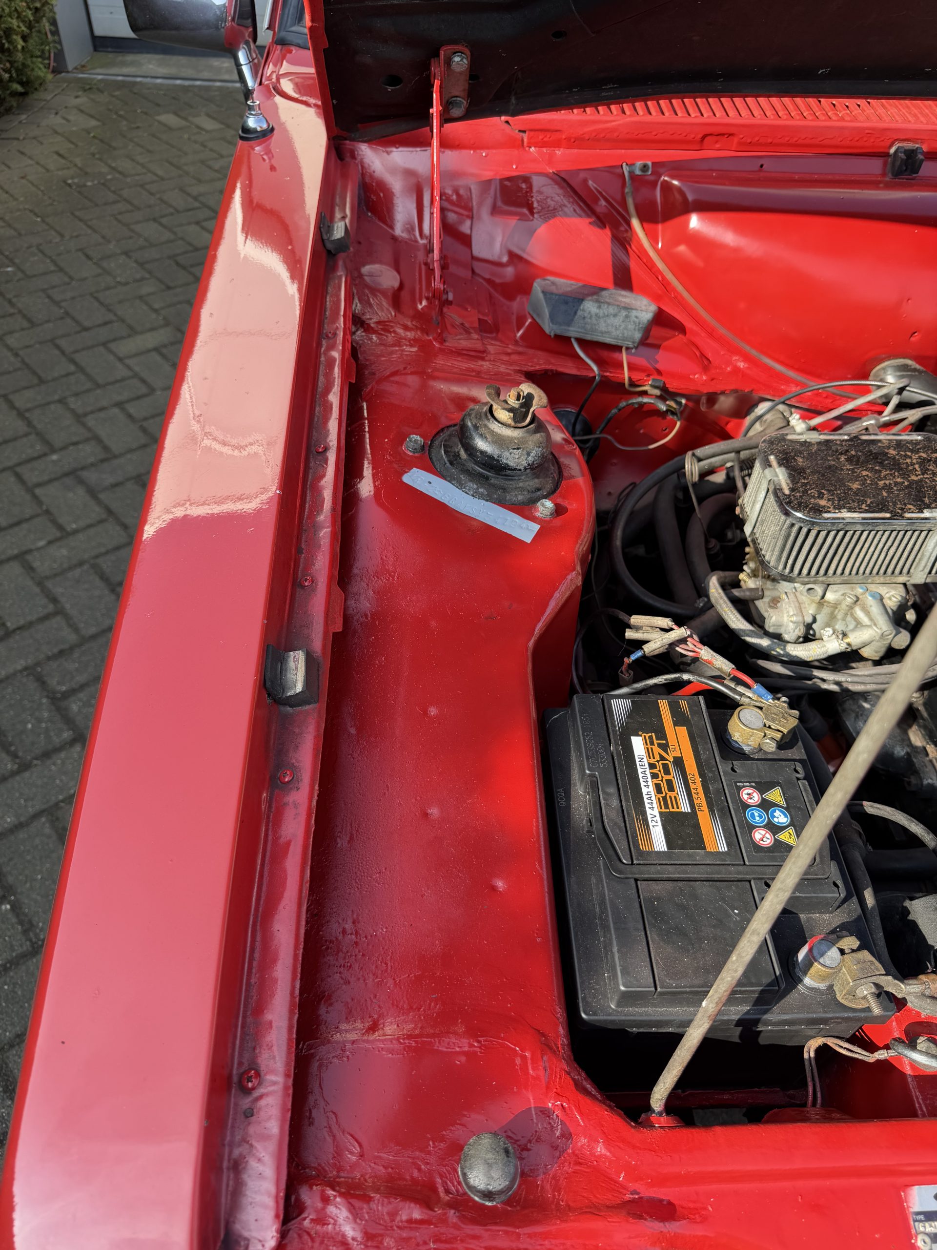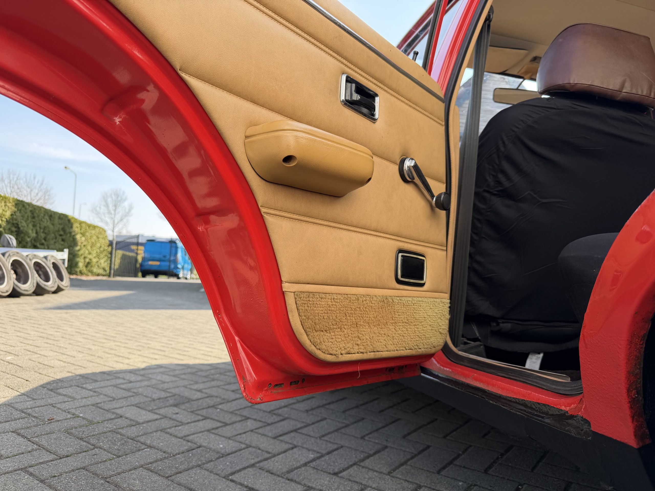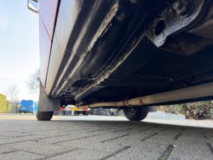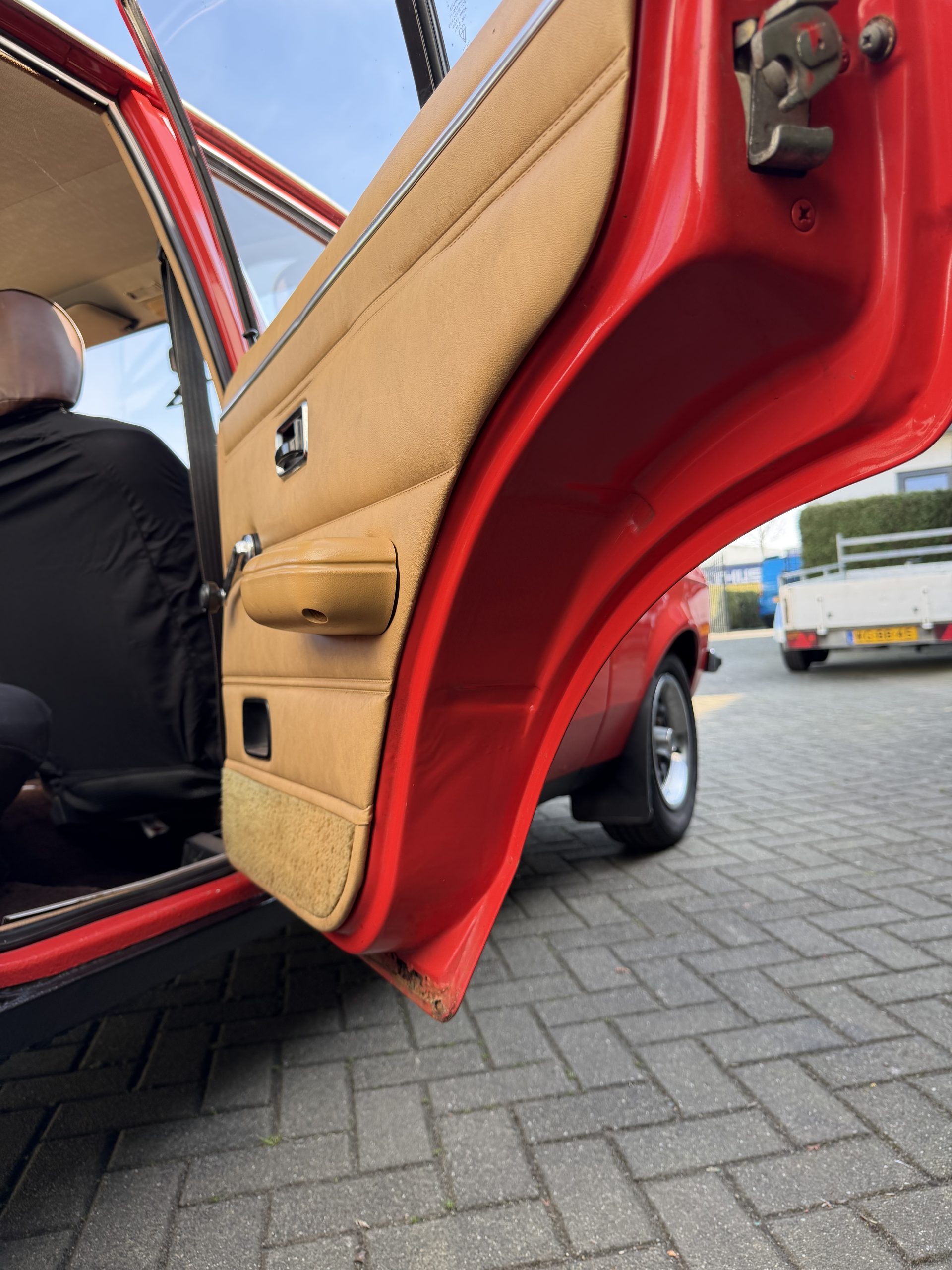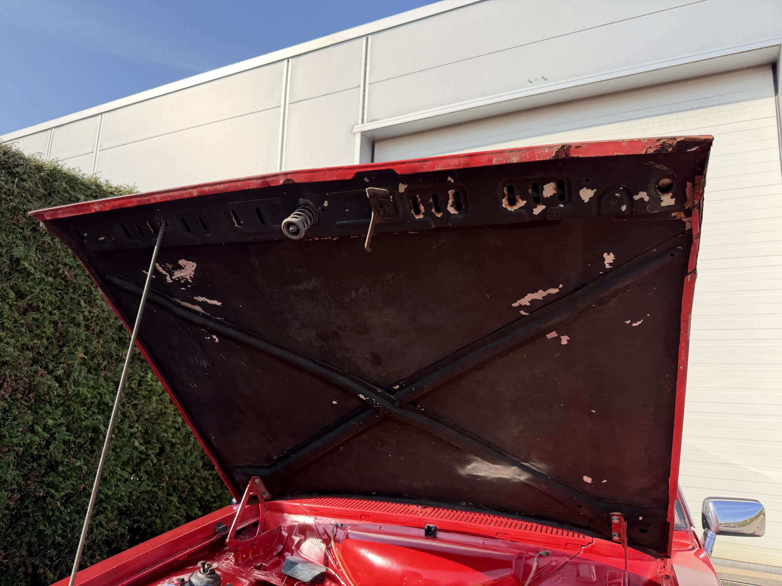 Carrosserie is in een redelijk goede staat, heeft in het verleden een paar kleine reparaties gehad en is een keer overgespoten. Toen hebben ze ook de Chrome zijlijsten en vinyl dak eraf gehaald. Ook zijn er ronde koplampen met een passende gril gemonteerd voor een iets wat sportievere look. Om de auto echt netjes te krijgen zou je hem een keer moeten overspuiten. De auto heeft wat plekjes maar niks wat heel ernstig is. De linker voordeur is slecht aan de onderkant, maar eventueel kunnen we een reserve deur erbij leveren.