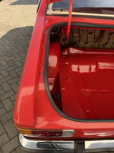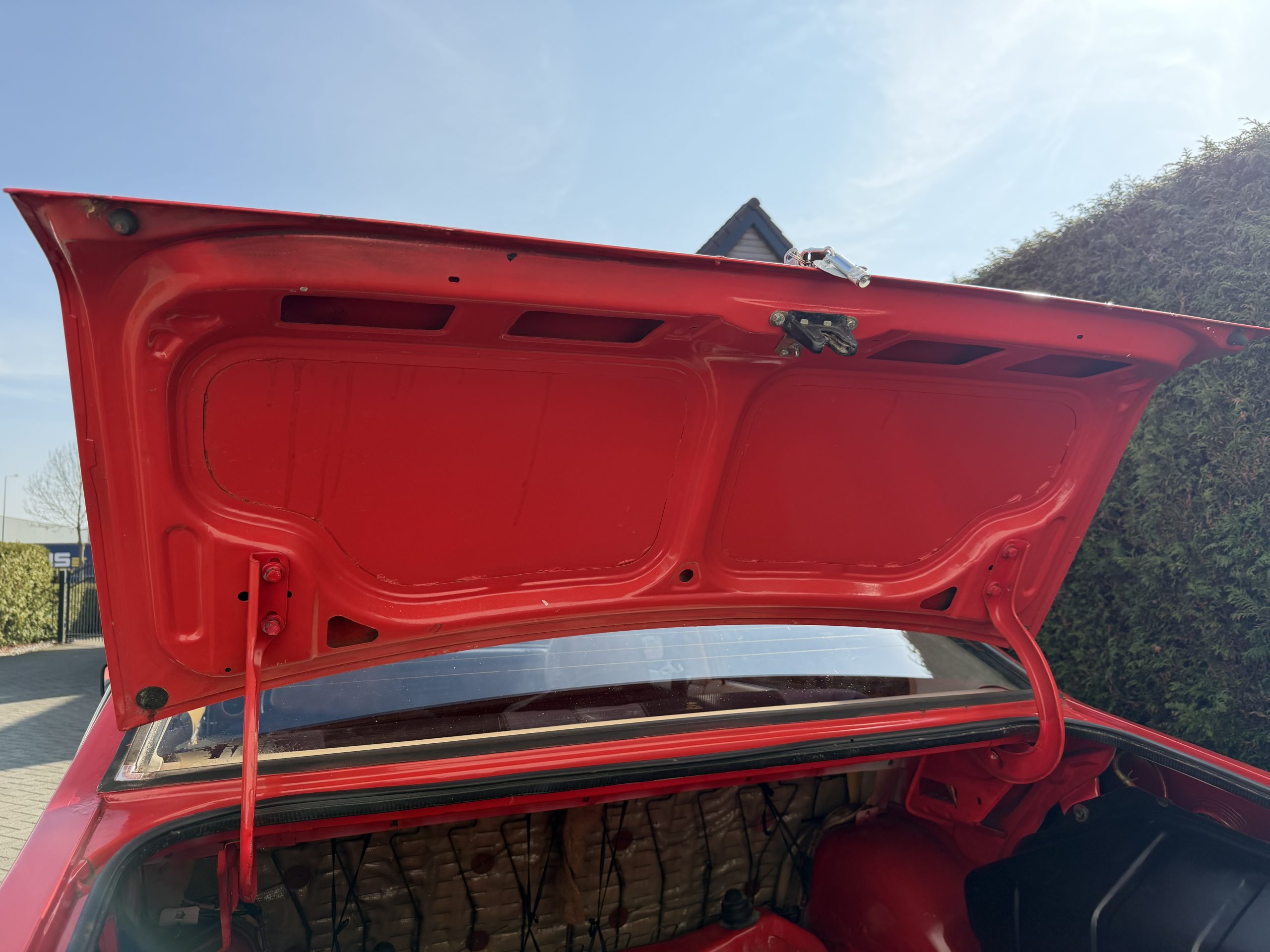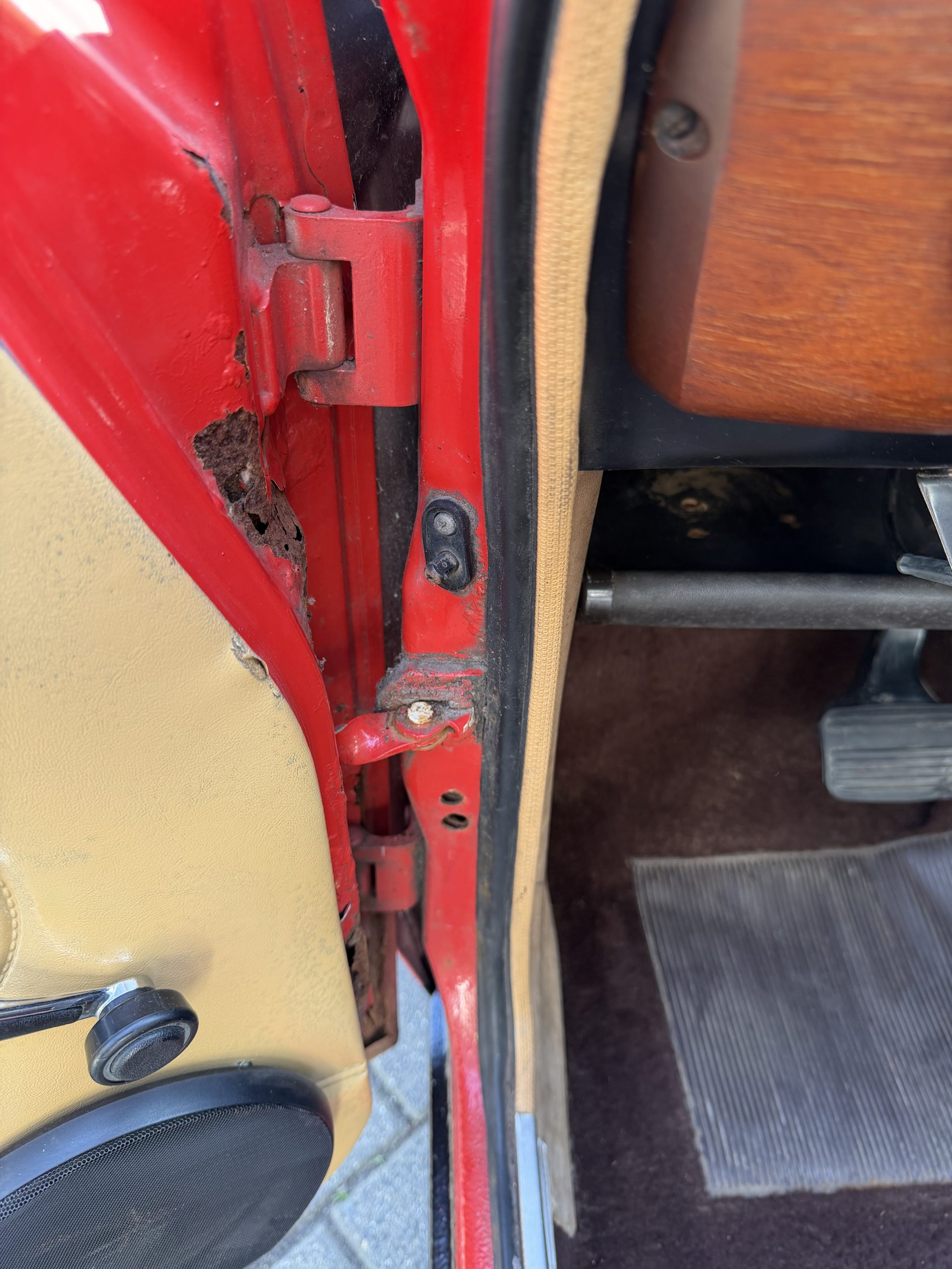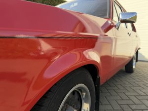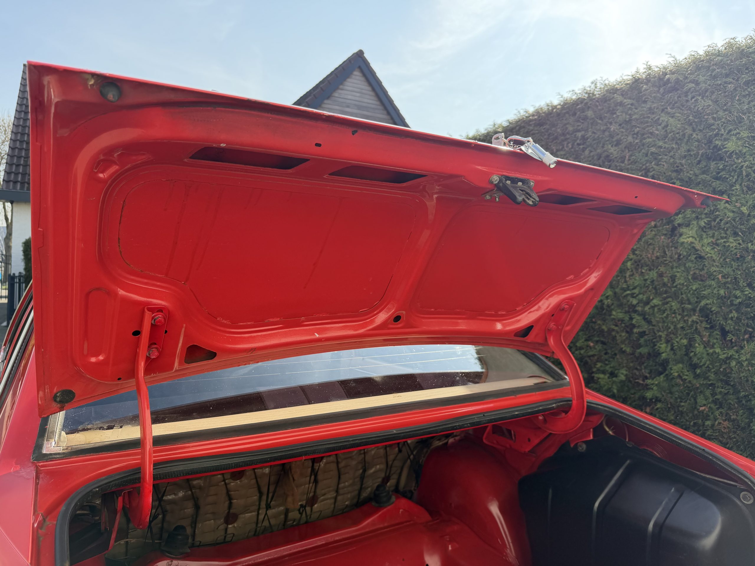 Carrosserie is in een redelijk goede staat, heeft in het verleden een paar kleine reparaties gehad en is een keer overgespoten. Toen hebben ze ook de Chrome zijlijsten en vinyl dak eraf gehaald. Ook zijn er ronde koplampen met een passende gril gemonteerd voor een iets wat sportievere look. Om de auto echt netjes te krijgen zou je hem een keer moeten overspuiten. De auto heeft wat plekjes maar niks wat heel ernstig is. De linker voordeur is slecht aan de onderkant, maar eventueel kunnen we een reserve deur erbij leveren.
