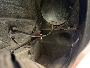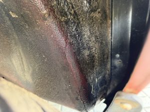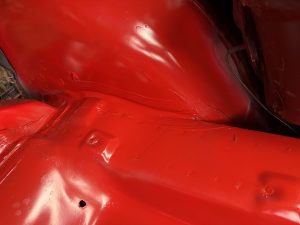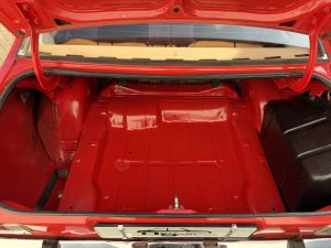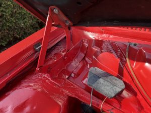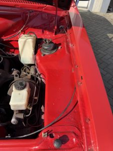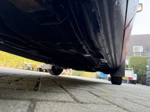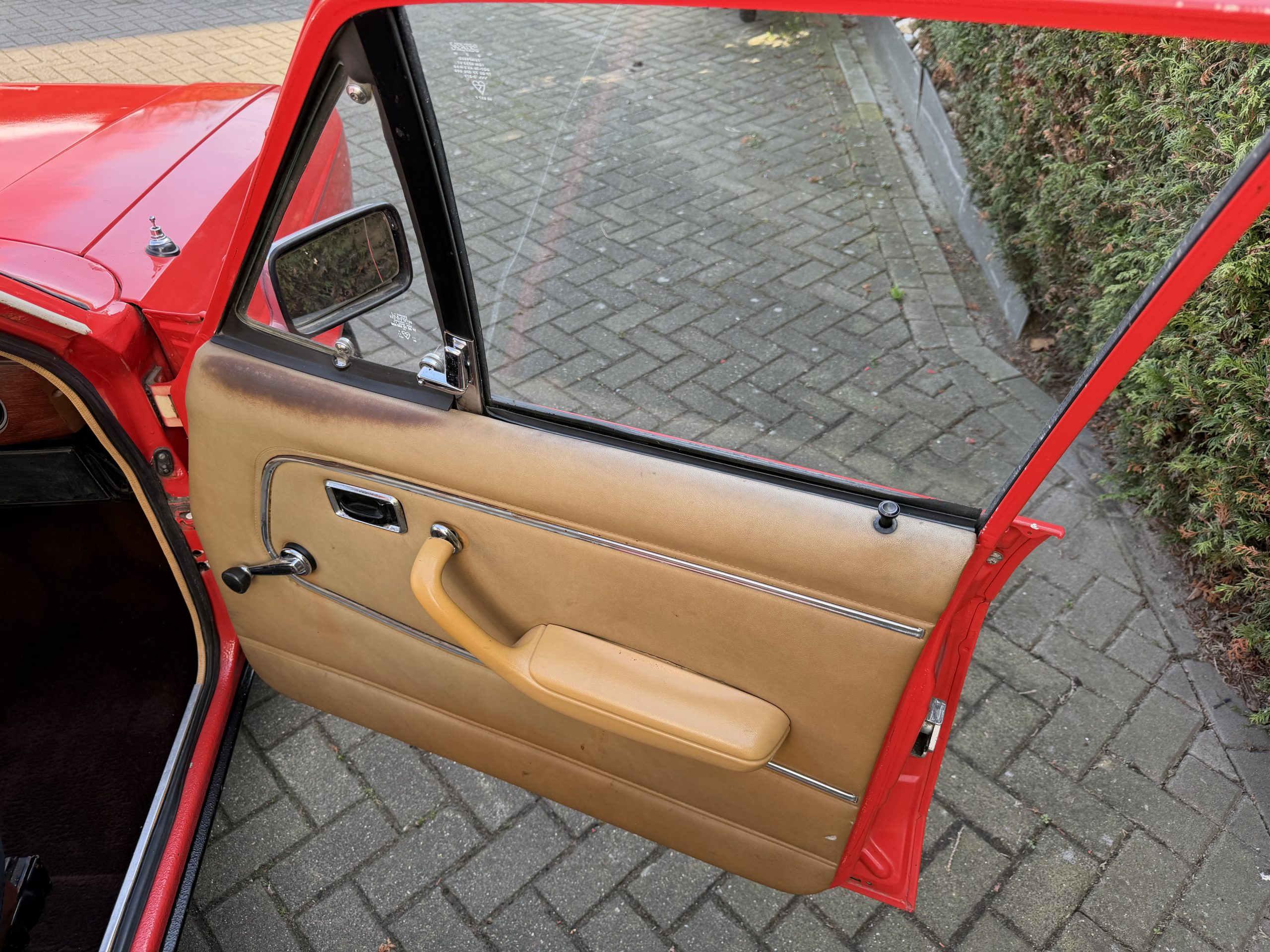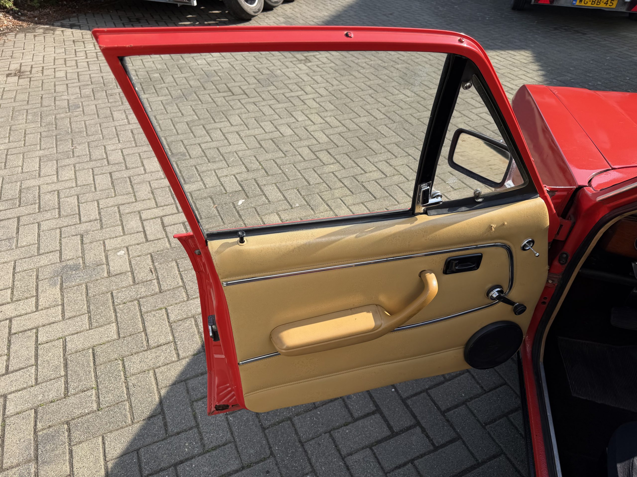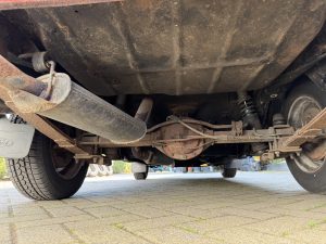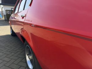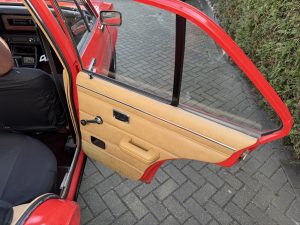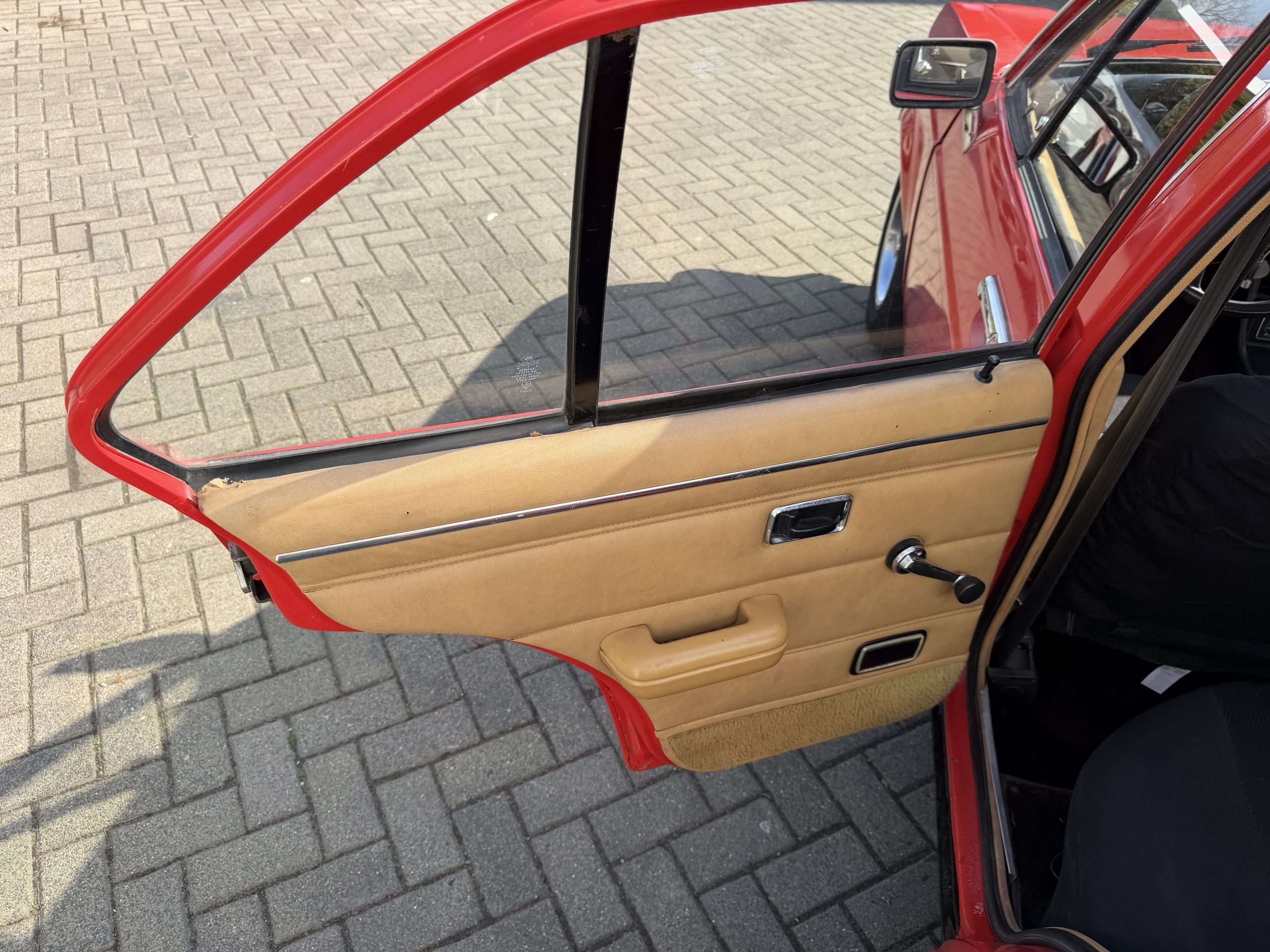 Carrosserie is in een redelijk goede staat, heeft in het verleden een paar kleine reparaties gehad en is een keer overgespoten. Toen hebben ze ook de Chrome zijlijsten en vinyl dak eraf gehaald. Ook zijn er ronde koplampen met een passende gril gemonteerd voor een iets wat sportievere look. Om de auto echt netjes te krijgen zou je hem een keer moeten overspuiten. De auto heeft wat plekjes maar niks wat heel ernstig is. De linker voordeur is slecht aan de onderkant, maar eventueel kunnen we een reserve deur erbij leveren.